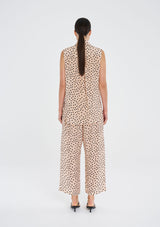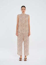 Crafted in Mela Purdie's mid-weight, soft washed Silk Crepe De Chine, featuring the vibrant Scattered Spot Print. The Pace Pant is the perfect wide pant silhouette suitable for any occasion.