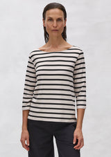 The Relaxed Boatneck from Mela Purdie features a boat neckline with ¾ length sleeves and a relaxed fit that falls to the hip. This is a must have essential for every wardrobe, offering optimal comfort and stretch. Crafted from a mid-weight knit jersey fabrication in the timeless Trunk Stripe.