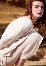 The Lottie Cotton Crew from Mia Fratino features a crew neckline, drop shoulder and full length sleeves. The neck, sleeves and hem are highlighted with refined soft roll details. Designed in a classic boxy cut, it offers a contemporary silhouette that effortlessly combines style and comfort. The blend of cotton and cashmere brings a luxurious feel to this lightweight sweater, making it a versatile addition to your wardrobe.