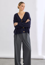 The Mae Cardi from Mia Fratino features a V-neckline, button through opening, full length sleeves and a hemline that steps down to a slightly longer length at the back. Crafted from 100% brushed cashmere and finished with a technique that makes this sweater look as soft as it feels.