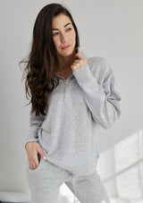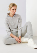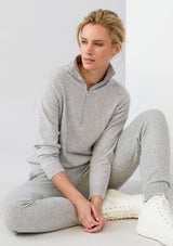 The Mae Half Zip Pullover by Mia Fratino is a must-have cashmere staple. Featuring a funnel neck with half zip and ribbed band sleeve and hem detail.