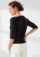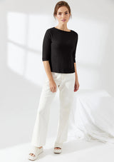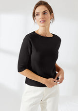 The Marli Ballet Crew from Mia Fratino features a crew neckline, elbow length sleeves and ribbed trim detail. Crafted from a premium cotton, silk and cashmere blend fabrication, this classic crew is a lightweight knit for all seasons.