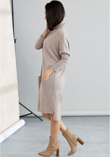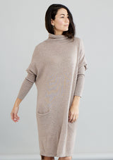 The Molly Polo Dress is a must-have cashmere staple. Made from 100% Mongolian Cashmere. Featuring a relaxed fit with a funnel neck, dropped shoulder with ribbed arm detail and front pockets. This piece has been designed for a flattering fit. Made from 12g jersey knit, this dress is made to last and suited for everyday wear.