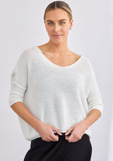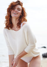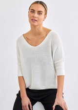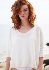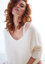 The Sasha Sweater from Mia Fratino features a soft v-neckline and elbow length sleeve with fitted ribbed cuffs. Designed in a classic boxy cut, it provides a modern silhouette that seamlessly blends style and comfort. The honeycomb-textured cotton adds a natural, earthy touch to this mid-weight sweater, making it a versatile addition to your everyday wardrobe.