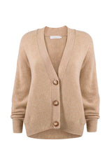 The Thea Button Cardi by Mia Fratino features rib detail on the cuffs and hemline. Knitted in a super cosy 8G structure, made from 100% Mongolian cashmere. This flattering cardi has been designed to sit on the hip. Easy wear over high waisted pants or skirts across all seasons.