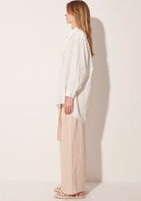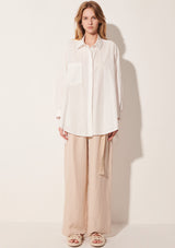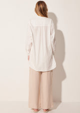 The Lagoon Draped Back Shirt by POL Clothing features an oversized style with a stand collar, button down closure, full length sleeves with cuffs, patch pocket detail and pleating detail on back yoke. Crafted from a premium 100% cotton shirting, this shirt is made for Spring days.