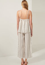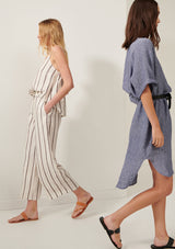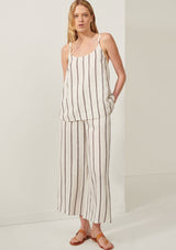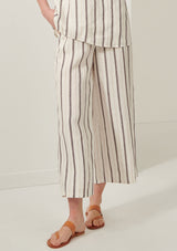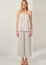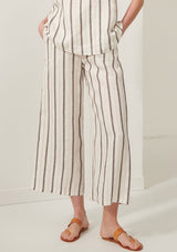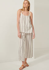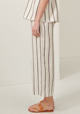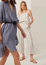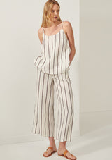 The Mimosa Pant from Australian Designer, POL Clothing is crafted from a linen and cotton blend with a textured stripe. It features a fixed waistband, zip opening, hip pockets and a cropped classic wide leg silhouette.