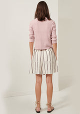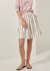 The Mimosa Short from Australian Designer, POL Clothing is crafted from a linen and cotton blend with a textured stripe. It features an elasticised waistband, hip pockets and a soft A-line silhouette.