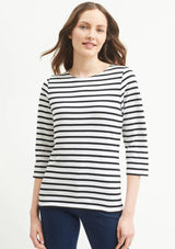 The Galathee II T-Shirt from French designer, Saint James features a crew neckline, ¾ length sleeves and striped design. This versatile T-Shirt is crafted from 100% combed cotton.