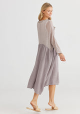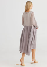 SH2759The Nikita Dress by The Shanty Corporation features a round neckline, dolman sleeve, open weave top and solid linen bottom. This oversized dress flaunts a playful silhouette for a look that is both modern and stylish. The contrasting textures lend an unexpected yet alluring finish.