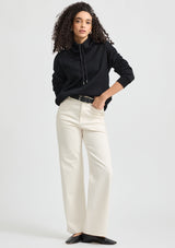 The Lounge Funnel Neck Sweater from Toorallie is a refined lounge essential. It features an extended funnel collar with a cotton drawcord and full-length banded hem sleeves. Complete with convenient in-seam side pockets and a banded hem, this versatile and neutral piece is light to wear with the warm and protective natural properties of the blended merino wool fibre. Whether lounging at home or out and about, this sweater is a dependable wardrobe staple.
