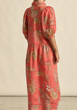 The Impel Dress by Zoe Kratzmann features detailing and a relaxed silhouette. Crafted with circular lace trims and vintage brass buttons, this piece balances presence with polish.