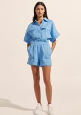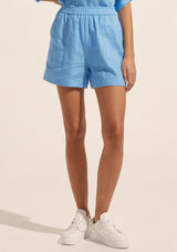 The Notion Short from Zoe Kratzmann features an elasticated waist, angled side pockets, top stitch detail on the hem and pockets and back patch pockets. These simple linen shorts are the epitome of summer.
